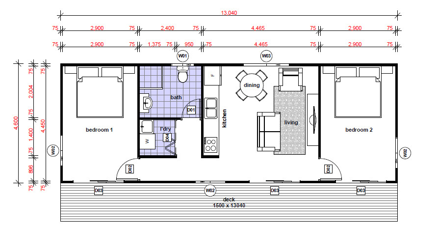 特徴 | Deepblue Australia Granny Flatは、軽量鋼フレームシステムをベースとし、環境に優しく、低炭素の仕上げ材を使用しています。 |